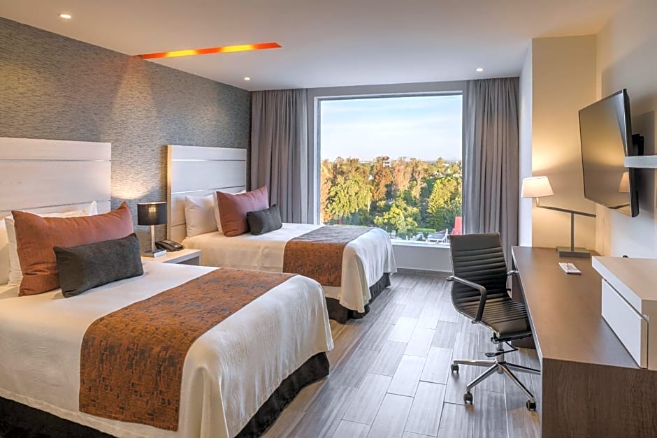 Ejecutiva Dos Camas is 409 square feet and includes 2 double beds 131-150 width plus extra beds on demand, desk, satellite tv , hairdryer, tea and coffee making facilities , ironing set, and safe.